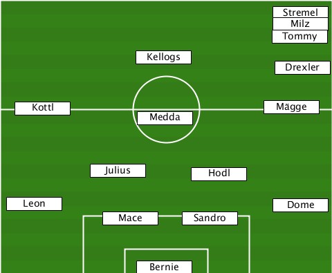 ----------------------------Stremel ----------------------------Milz- ----------------------------Tommy ---------------Kellogs----------- ----------------------------Drexler ---Kottl--------Medda--------Mägge- ----------Julius-----Hodl--------- --Leon-----------------------Dome- -----------Mace-----Sandro-------- ---------------Bernie------------