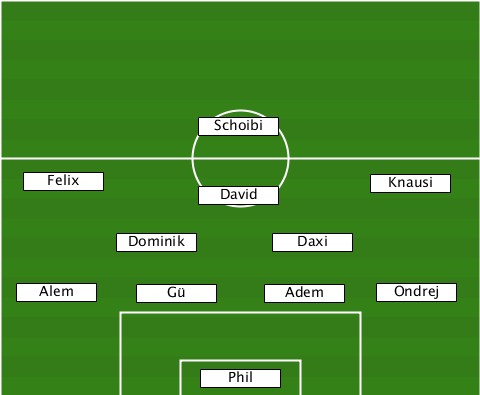 ---------------Schoibi----------- ---Felix--------David-------Knausi- ---------Dominik-----Daxi--------- ---Alem-----Gü-------Adem-----Ondrej ---------------Phil--------------