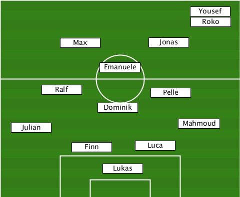 ---------------------------Yousef ---------------------------Roko-- ---------Max----------Jonas------- ---------------Emanuele---------- -------Ralf------------Pelle------ --------------Dominik------------ ---Julian-----------------Mahmoud- -----------Finn-----Luca---------- ---------------Lukas-------------